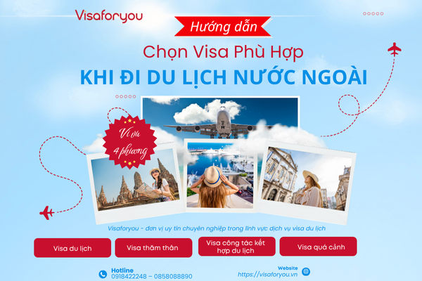 Đi du lịch quốc tế cần loại visa nào? Bài viết hướng dẫn chi tiết cách chọn visa du lịch, thăm thân, công tác kết hợp và các lưu ý quan trọng. Liên hệ Visaforyou – Hotline 0918422248 - 0858088890.